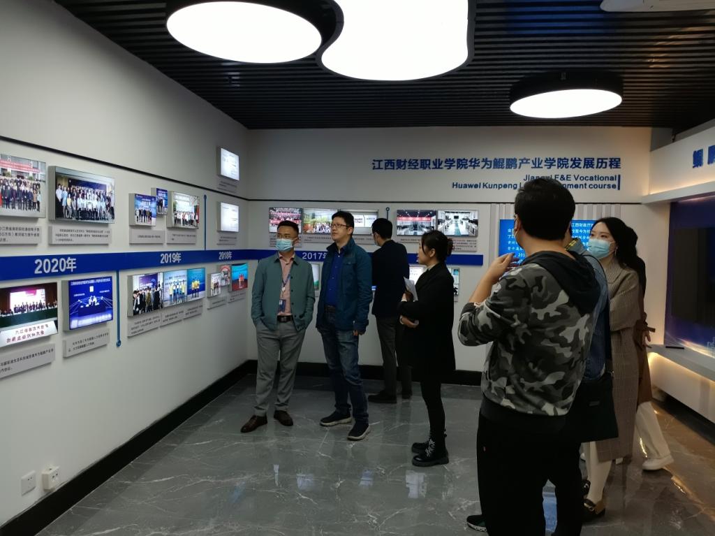 周处一行在负责人的带领下,首先参观了鲲鹏公司实训(场所),详细了解了实训基地的运行状况。随后,双方在w88win体育官网入口会议室举行座谈会。