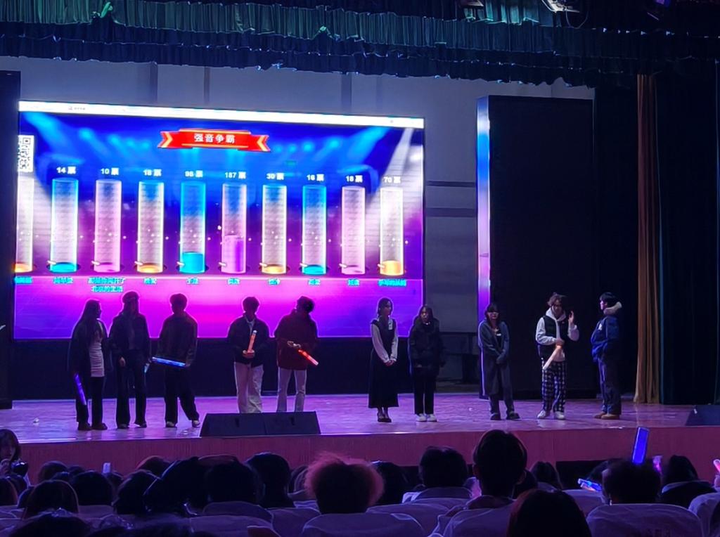 决赛当晚,现场气氛异常火爆,观众席上座无虚席,同学们挥舞着荧光棒,点点光芒在略显暗下的礼堂中汇聚成流动的星河,映照着一张张愉悦而投入的脸庞,大家随着音乐的节奏鼓掌、欢呼,整个宽敞明亮的礼堂充满了热烈的互动气息;舞台之上是梦想绽放的焦点,参赛选手们无一不全力以赴,有人以温柔的声线诉说细腻心事,有人用激昂的唱腔释放青春热血,有人凭借灵动的舞台表现点燃全场热情,每一位选手都将自己对音乐的热爱、对舞台的敬畏融入表演之中,用歌声传递真挚情感,用姿态诠释青春态度,他们的每一次开嗓、每一个走位,都让现场的氛围一次次推向高潮,也让在场观众真切感受到了青春独有的活力与光芒。
