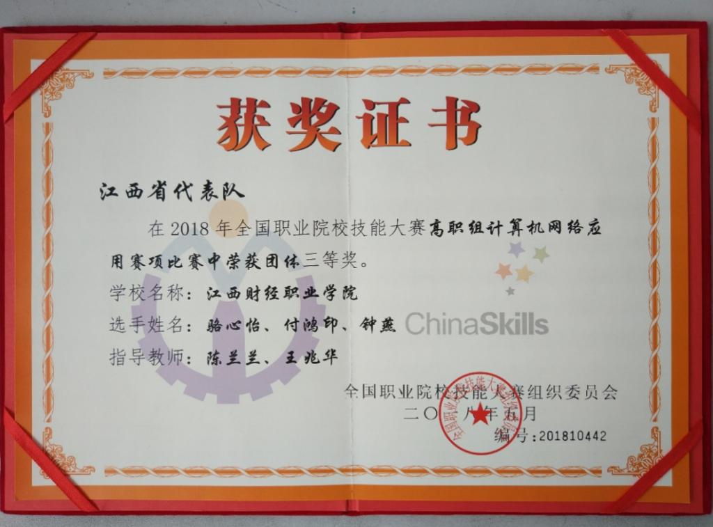 2018年全国职业院校技能大赛计算机网络应用三等奖