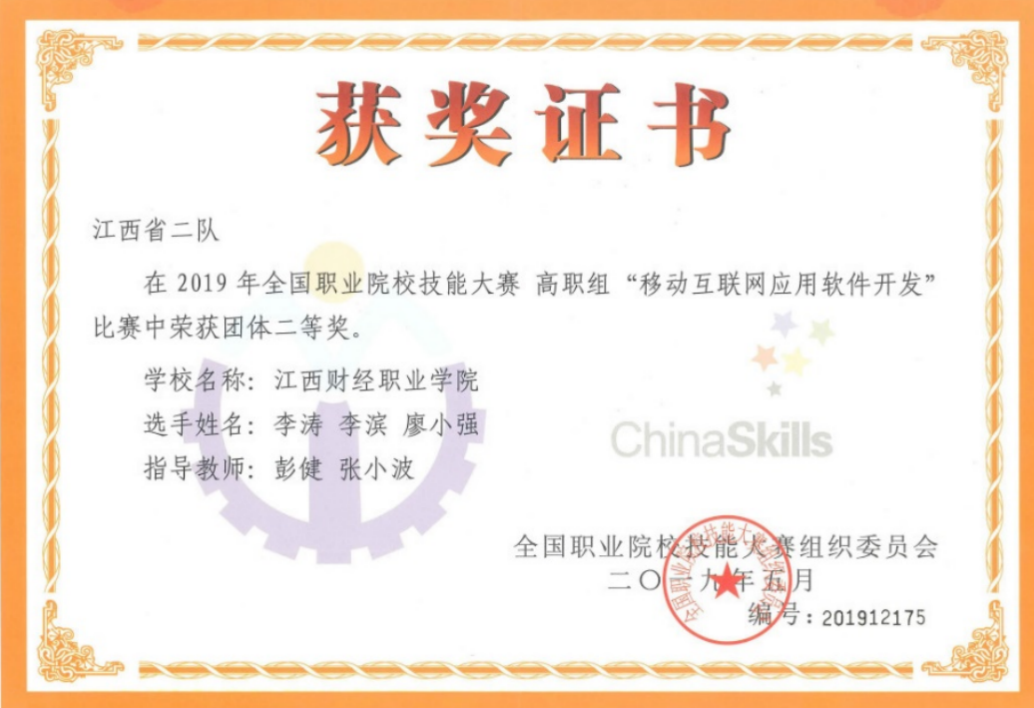 2019年全国职业院校技能大赛移动互联网应用软件开发二等奖