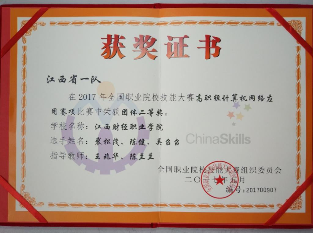 2017年全国职业院校技能大赛计算机网络应用二等奖